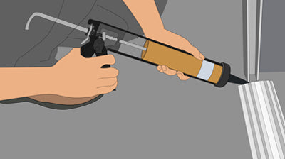 b) Apply sealant & adhesive around the edges of the threshold seal and the wall to ensure a watertight seal.