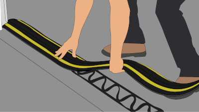 With the garage door closed, place the threshold seal in position and push it up against the back of the door to create a tight seal.