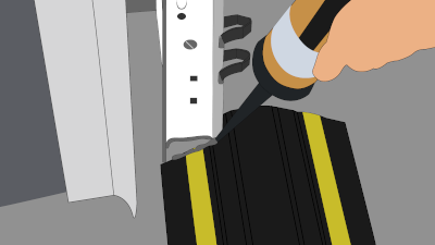 4. Apply unbroken lines of adhesive around the side block where it meets the wall, door, and track.