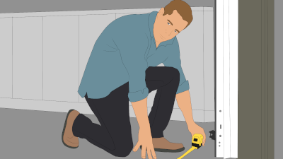With the door closed, position the threshold seal against the back of the door from inside the garage.