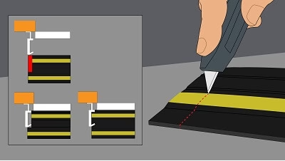 Remove the threshold seal from the floor and mark two parallel lines approx. ⅓” inside the existing lines.