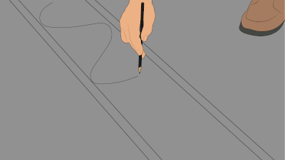 Apply the adhesive to the floor in unbroken lines, following the inner parallel lines marked out in Step 6. Apply an unbroken zigzag line of adhesive between the parallel lines, following the line marked previously.