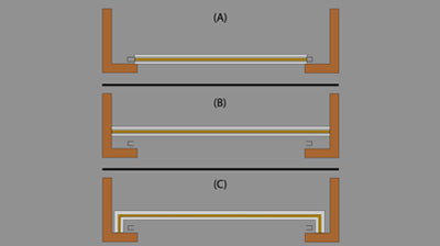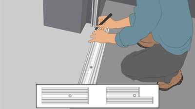 c) If fitting the threshold seal around the door tracks, measure the distance between the wall and the back edge of the threshold seal and cut the end sections to this length. Using a mitre saw, cut the threshold seal sections accordingly.