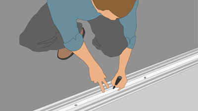 Turn the threshold section(s) upside down and insert the bottom seals into the grooves at either end of the threshold, and cut off any excess.