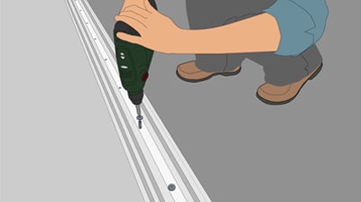Remove the threshold, and using a ¼" (6mm) drill bit, drill the holes for the screws.